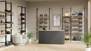 Looking for specifically tailored footwear displays for your retail space? Our experienced interior design team is here to help. We’ll guide you in choosing the right commercial shoe display racks and other furniture from our collection and work with you to create a solution that fits both your space and your business needs.