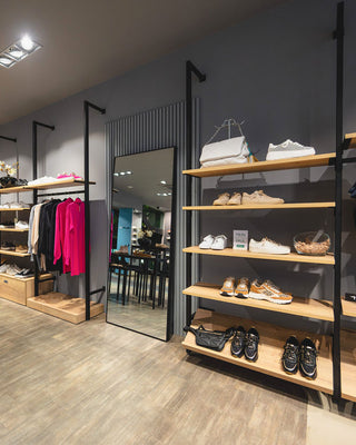 Our modular retail display shelves open up a wide range of creative possibilities for your shoe collection display. The right setup for your store depends on both your product assortment and your target audience. However, one thing is certain: A well-thought-out, flexible store design is key to presenting your merchandise attractively, and to adapting quickly when new collections arrive.